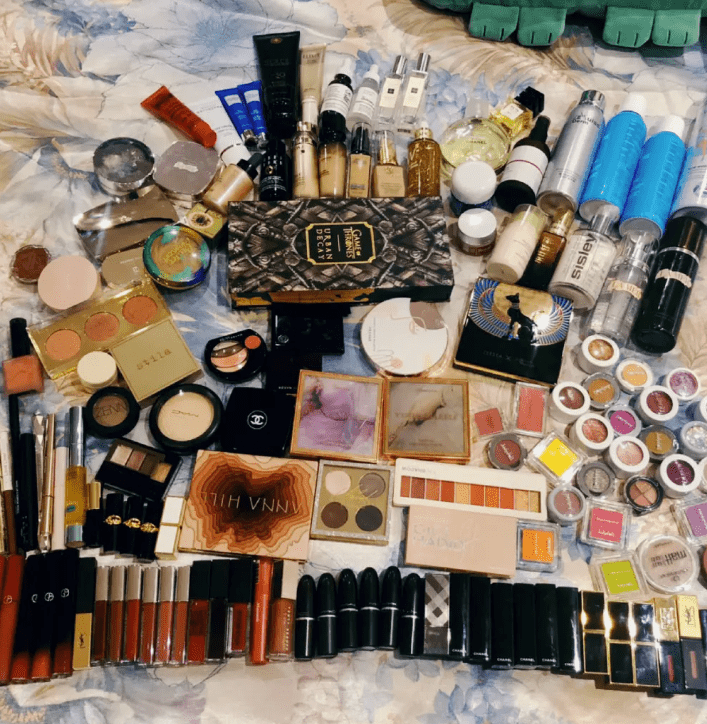 我们:水,乳,精华,眼霜,面霜,气垫,隔离,粉底,腮红,眼影,修容,假睫毛,美瞳
