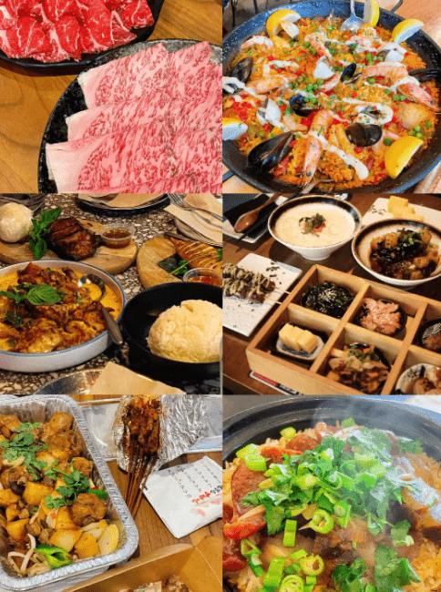 我们:火锅、日料、韩餐、西香中餐、简餐、减肥餐下午茶、烧烤、海鲜