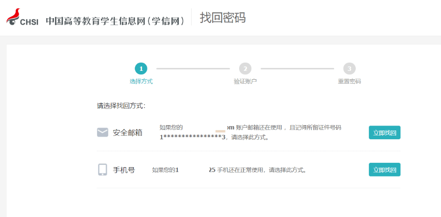 系统就给你提供了最多三种方式找回密码,因账号注册时未绑定邮箱或者设置密保问题,则只显示手机号码的找回方式。记得哪个就用哪个,如果你的学信网账号也没有绑定邮箱,手机号也不用了,密保问题也不记得了,那么可以选择重新注册;