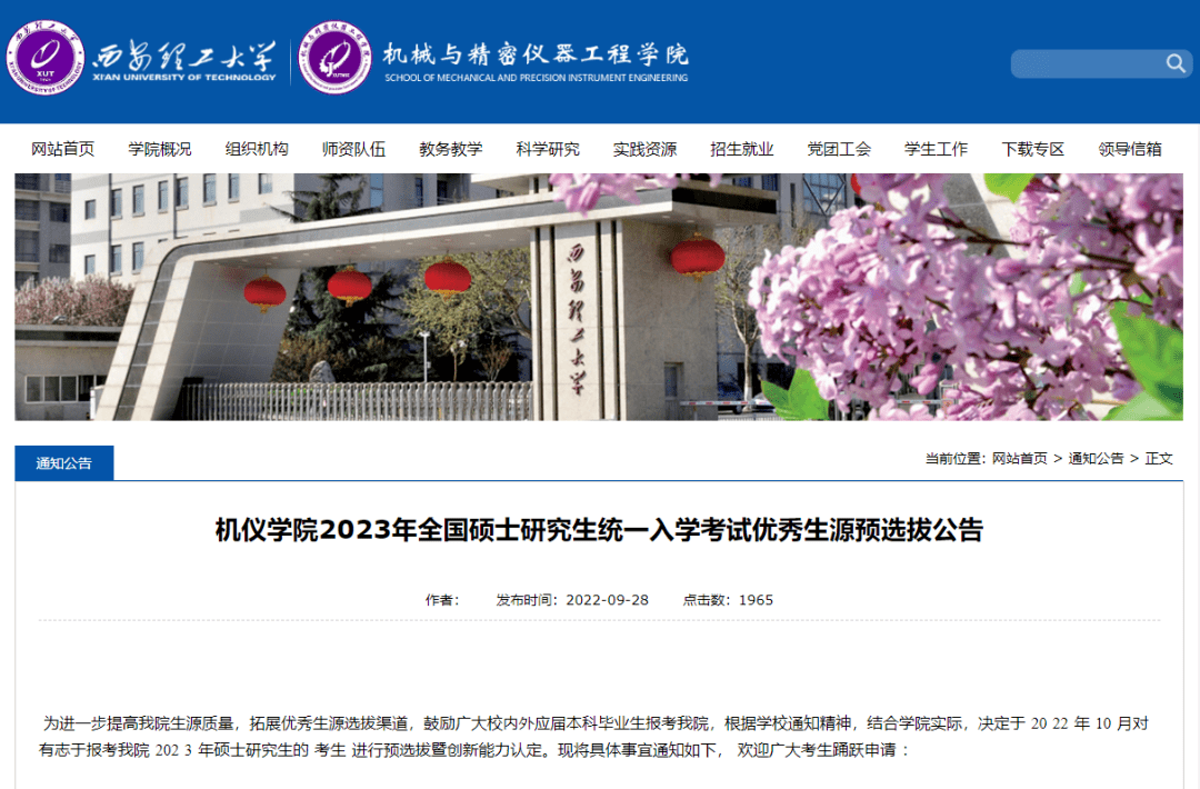 西安理工大学每年7-9月会对报考学校当年硕士研究生的校内外应届本科毕业生进行预选拔暨创新能力认定。