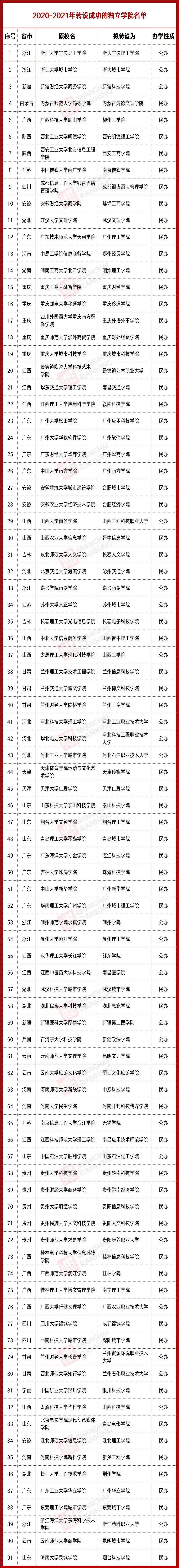 还有独立学院逐渐转为民办学校,并且进行了更名,而原本作为独立学院的“他们”自然就消失了。
