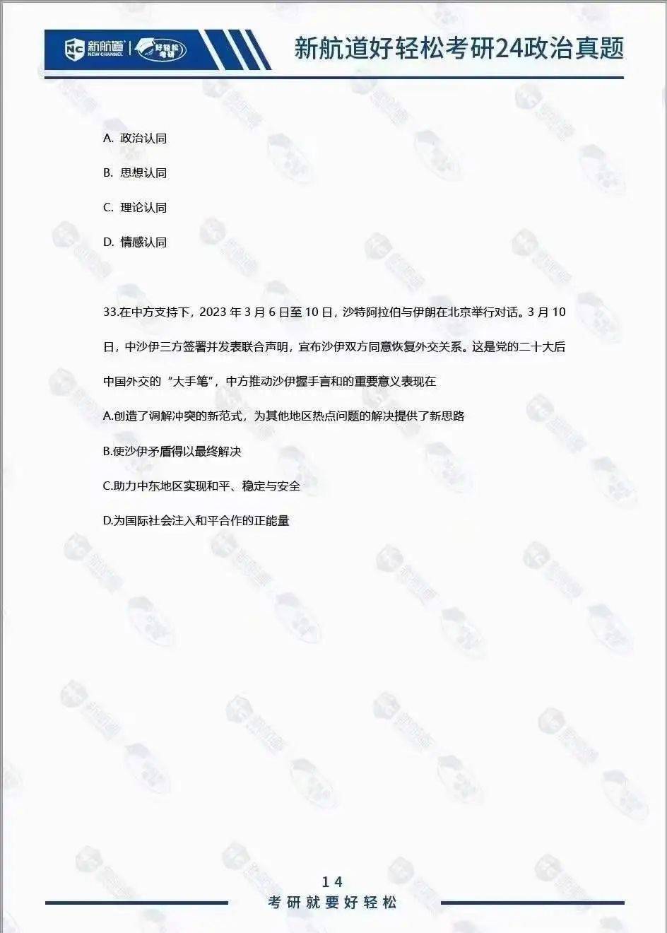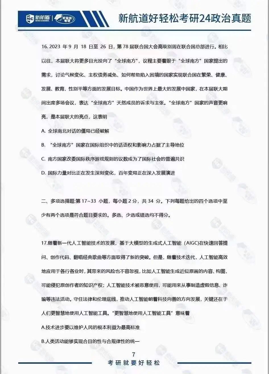 还没拿到24政治真题的同学