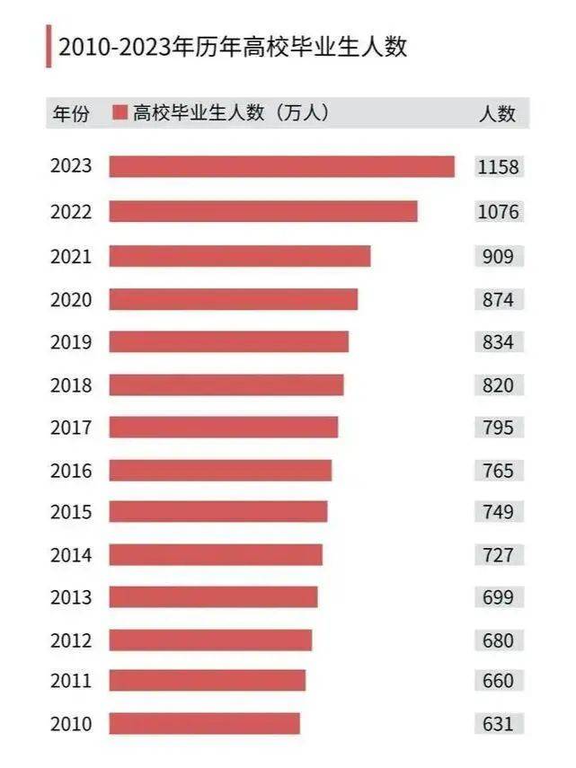 2021届高校毕业生909万人,2022届毕业生1076万人,据教育部统计,2023届全国普通高校毕业生规模预计达1158万,同比增加82万,高校毕业生规模将继续扩大。