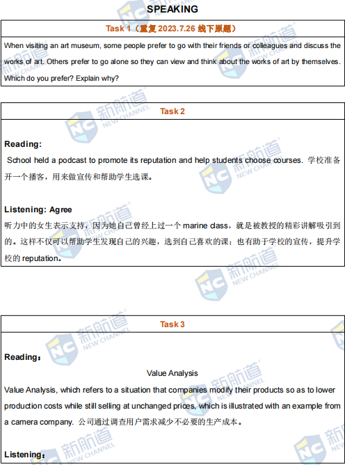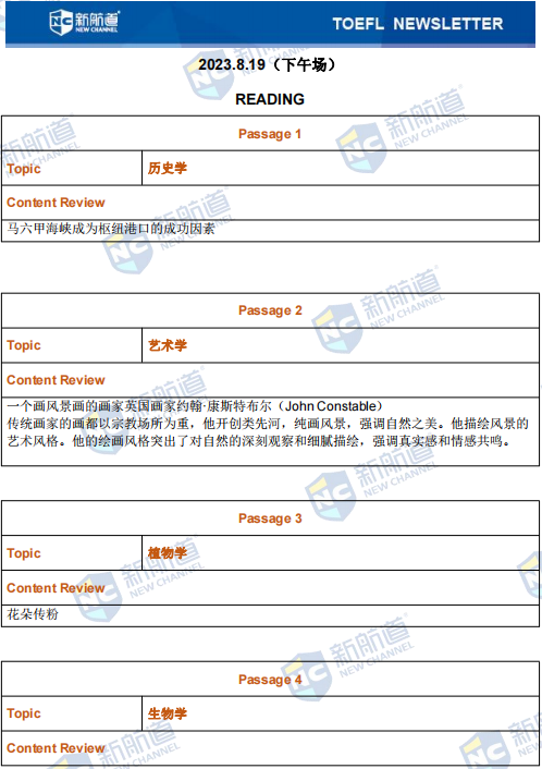 本文为新航道长沙学校托福教研组整理新航道2023年8月19日托福考试回忆(下午场)。每场考试结束后,新航道托福老师及时推送本场考试的完整版考题回忆和解析。可关注新航道长沙学校官方网站http://cs.xhd.cn,雅思分析、托福分析栏目将及时更新,帮助小伙伴们更好的备战雅思托福!!