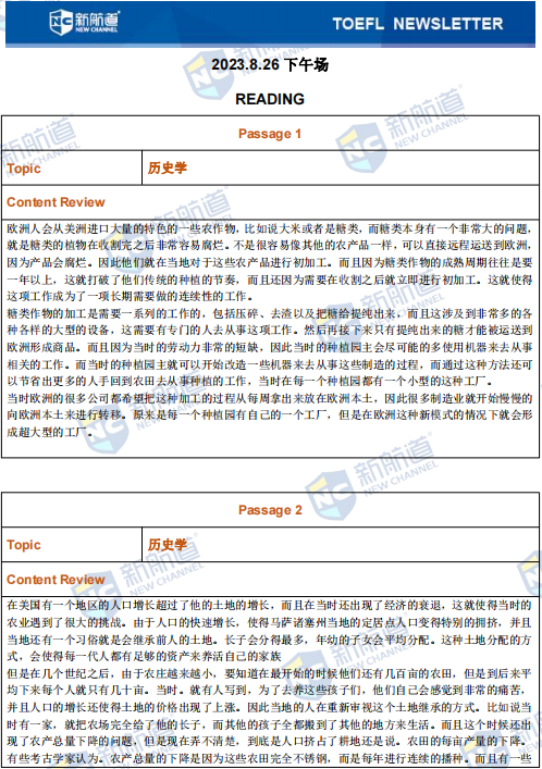 本文为新航道长沙学校托福教研组整理新航道2023年8月23日托福考试回忆(下午场)。每场考试结束后,新航道托福老师及时推送本场考试的完整版考题回忆和解析。可关注新航道长沙学校官方网站http://cs.xhd.cn,雅思分析、托福分析栏目将及时更新,帮助小伙伴们更好的备战雅思托福!!