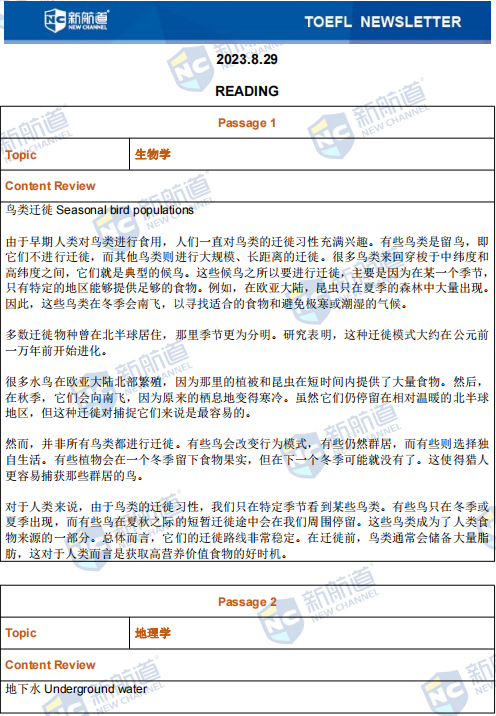 本文为新航道长沙学校托福教研组整理新航道2023年8月29日托福考试回忆。每场考试结束后,新航道托福老师及时推送本场考试的完整版考题回忆和解析。可关注新航道长沙学校官方网站http://cs.xhd.cn,雅思分析、托福分析栏目将及时更新,帮助小伙伴们更好的备战雅思托福!!