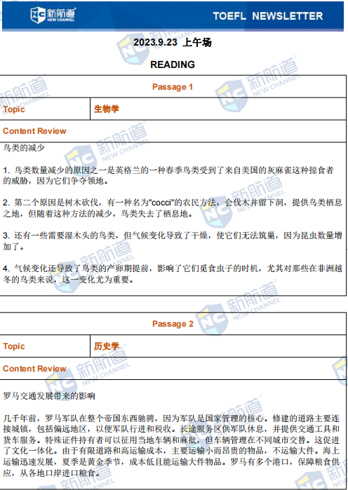本文为新航道长沙学校托福教研组整理新航道2023年9月23日(上午场)托福考试回忆。每场考试结束后,新航道托福老师及时推送本场考试的完整版考题回忆和解析。可关注新航道长沙学校官方网站http://cs.xhd.cn,雅思分析、托福分析栏目将及时更新,帮助小伙伴们更好的备战雅思托福!!