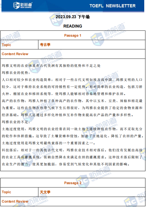 本文为新航道长沙学校托福教研组整理新航道2023年9月23日(下午场)托福考试回忆。每场考试结束后,新航道托福老师及时推送本场考试的完整版考题回忆和解析。可关注新航道长沙学校官方网站http://cs.xhd.cn,雅思分析、托福分析栏目将及时更新,帮助小伙伴们更好的备战雅思托福!!