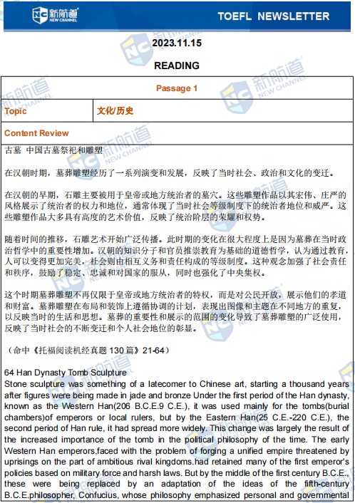 本文为新航道长沙学校雅思教研组整理新航道2023年11月15日托福考试回忆。每场考试结束后,新航道托福老师及时推送本场考试的完整版考题回忆和解析。可关注新航道长沙学校官方网站http://cs.xhd.cn,雅思分析、托福分析栏目将及时更新,帮助小伙伴们更好的备战雅思托福!!