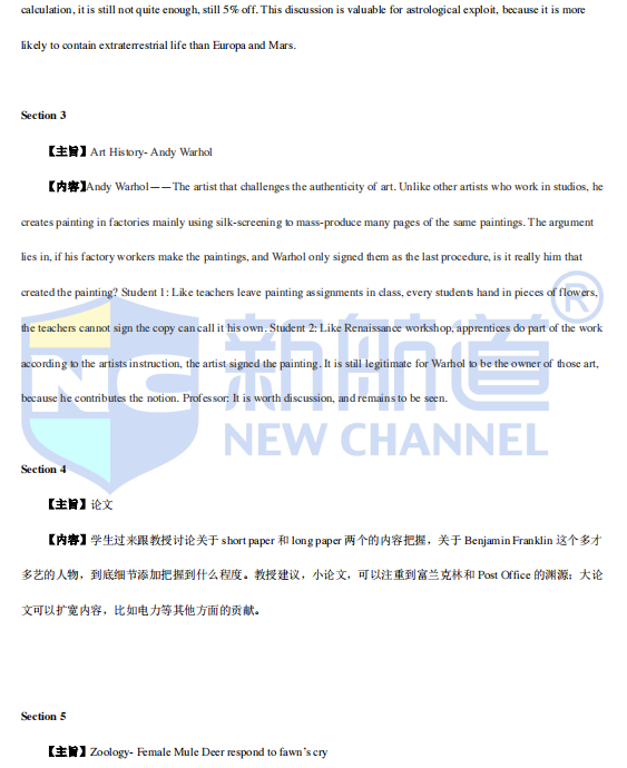本文为新航道长沙学校托福教研组整理新航道2023年4月新托福听力考试分析。每场考试结束后,新航道托福老师及时推送本场考试的完整版考题回忆和解析。可关注新航道长沙学校官方网站http://cs.xhd.cn,雅思分析、托福分析栏目将及时更新,帮助小伙伴们更好的备战雅思托福!
