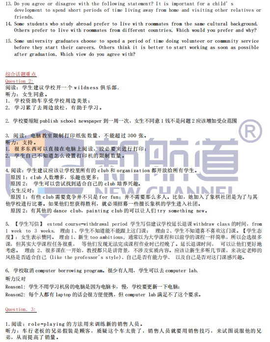 本文为新航道长沙学校托福教研组整理新航道2023年4月新托福口语考试分析。每场考试结束后,新航道托福老师及时推送本场考试的完整版考题回忆和解析。可关注新航道长沙学校官方网站http://cs.xhd.cn,雅思分析、托福分析栏目将及时更新,帮助小伙伴们更好的备战雅思托福!