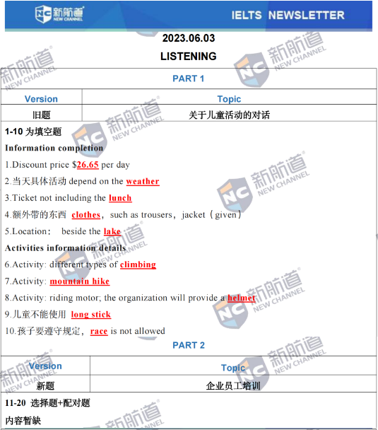 本文为新航道长沙学校雅思教研组整理新航道2023年6月3日雅思考试回忆。每场考试结束后,新航道雅思老师及时推送本场考试的完整版考题回忆和解析。可关注新航道长沙学校官方网站http://cs.xhd.cn,雅思分析、托福分析栏目将及时更新,帮助小伙伴们更好的备战雅思托福!!