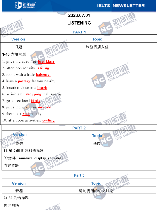 本文为新航道长沙学校雅思教研组整理新航道2023年7月1日雅思考试回忆。每场考试结束后,新航道雅思老师及时推送本场考试的完整版考题回忆和解析。可关注新航道长沙学校官方网站http://cs.xhd.cn,雅思分析、托福分析栏目将及时更新,帮助小伙伴们更好的备战雅思托福!!