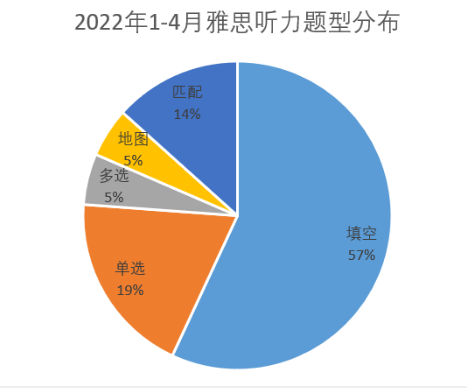 2022年1月至4月雅思听力场景分布表: