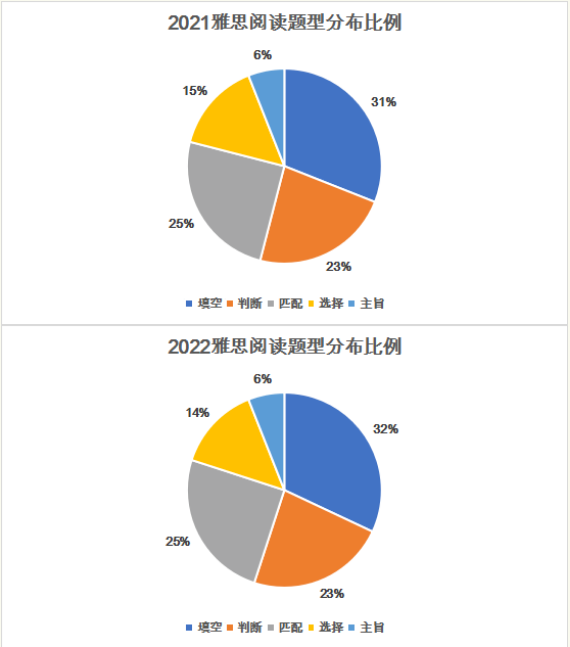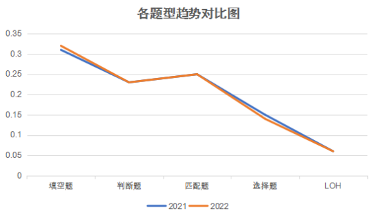 综合整年考情分析,各题型出现比例在2021年和2022年对比图如下: