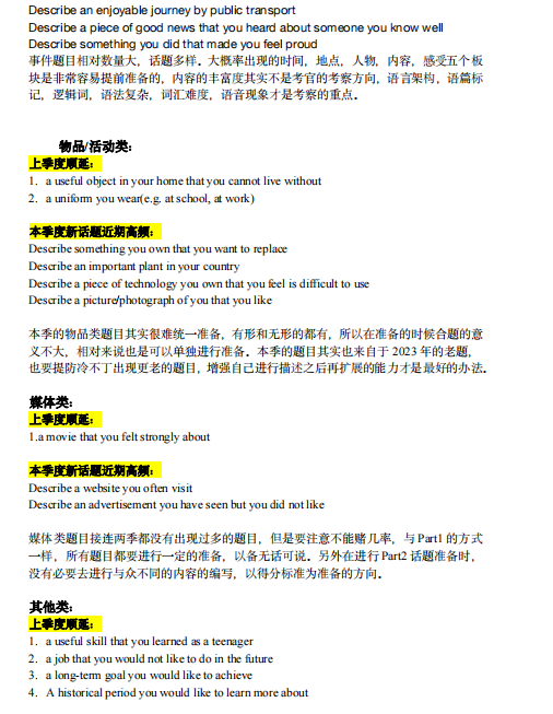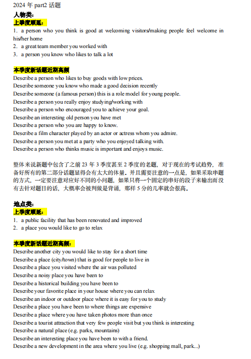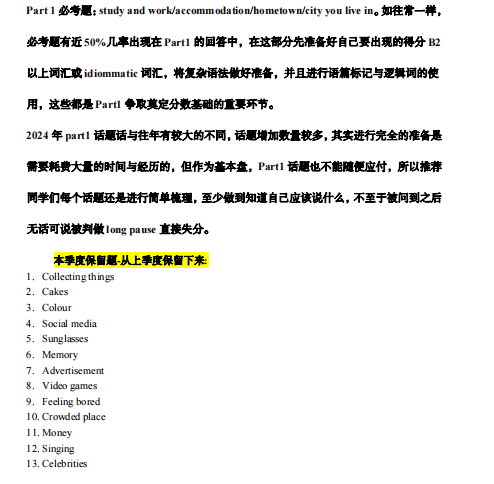 本文为新航道长沙学校雅思教研组整理新航道新航道2024年8月雅思口语考试分析。每场考试结束后,新航道雅思老师及时推送本场考试的完整版考题回忆和解析。可关注新航道长沙学校官方网站http://cs.xhd.cn,雅思分析、托福分析栏目将及时更新,帮助小伙伴们更好的备战雅思托福!