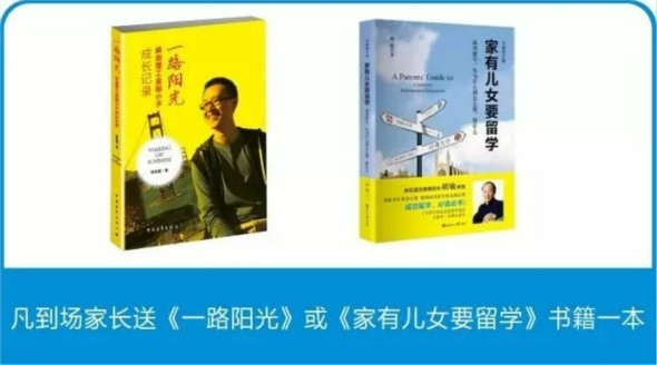 凡到场家长即送《一路阳光》或《家有儿女要留学》书籍一本。