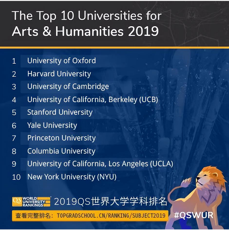 2019QS世界大学学科排名是QS规模的排名研究成果,比起去年QS大学排行榜,科目榜单可以更直观地看到所选专业在全球的排名,对于更在意专业度和学科教学质量的同学有很大的参考意义。