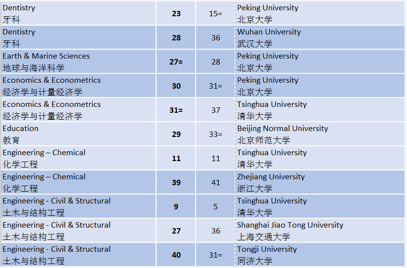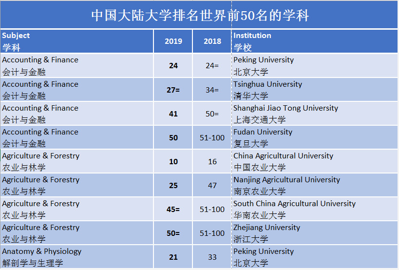 2019年2月27日星期三,全球关注度的QS世界大学一期学科排名结果公布!中国大陆大学中,有96个科系排名在全球前50名,比2018年多了9个科系。此外,中国农业大学还进入世界前10名(第10名),清华大学和北京大学也都有学科a进入了世界前十。
