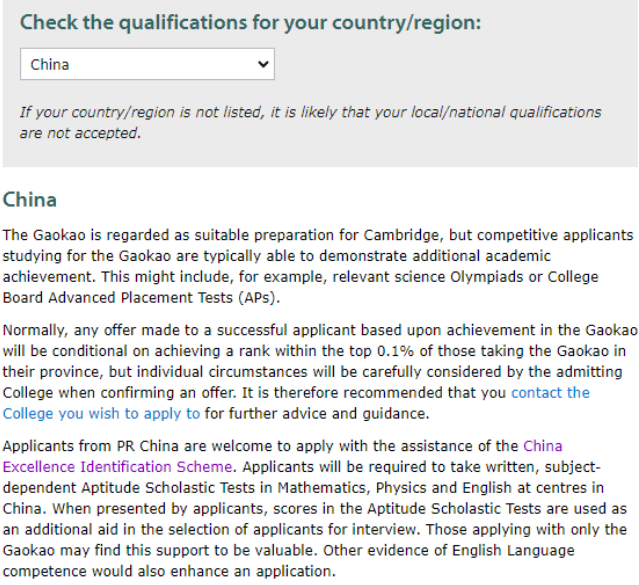 已经完成高考的申请者,需要提供高考成绩以及语言成绩。