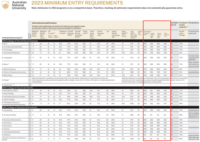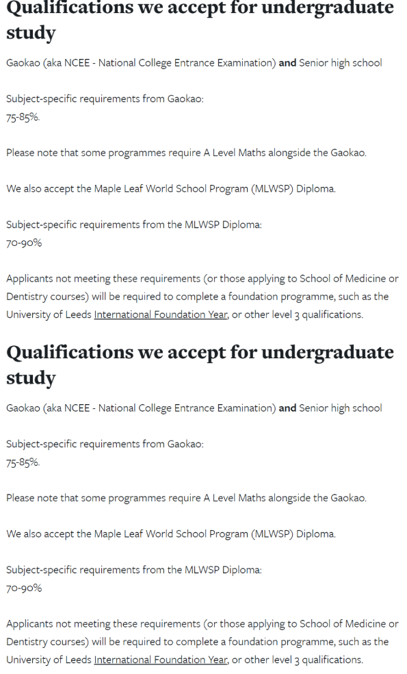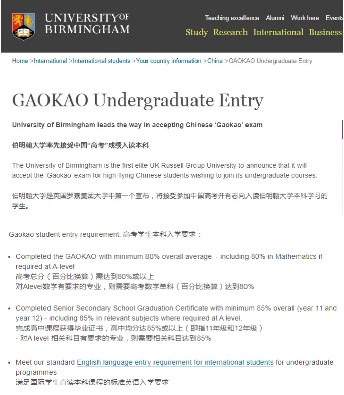 ●只有理学院(Faculty of Science)接受高考成绩直接申请