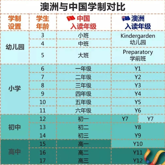 在维多利亚州、新南威尔士州的中学是从7年级开始,澳洲的11年级和12年级的课程,大体相当于中国的高中,以面向大学升学为主,其中也包含一些职业性课程准备。