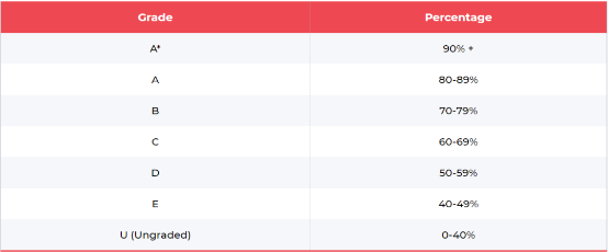 ◆ A-Level考试不是百分制,考试成绩分为A*、A、B、C、D、E、U七个等级。