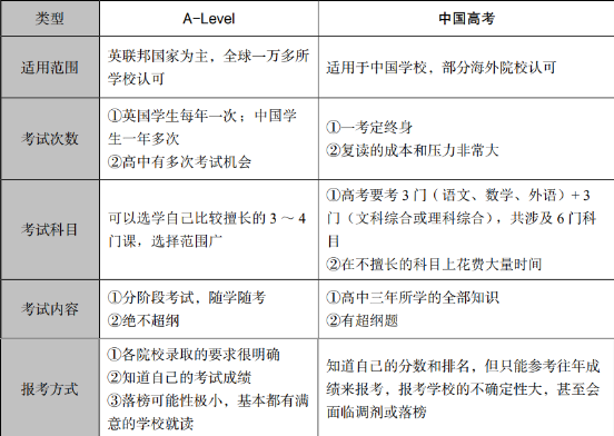 同样作为高中课程体系,A-Level考试与中国高考相比,在考试次数、考试科目、报考方式等方面存在着显著差异。