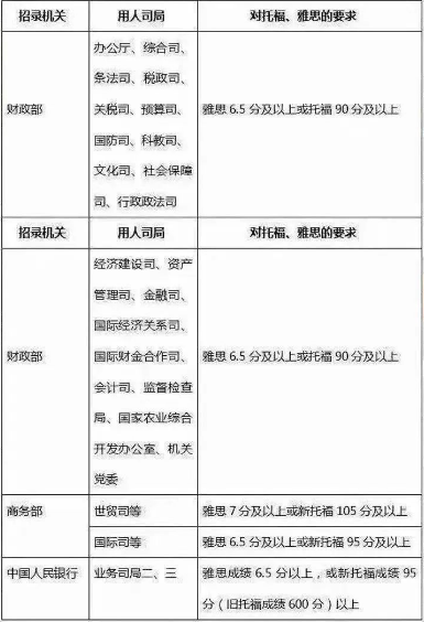 而在一些更加国际化,对于英语要求更高的岗位,如贸易、海事、招商、港澳台这类职位,对雅思托福的要求则普遍上了一个台阶。雅思7、托福105成为了竞争这些岗位的入场券。按照今年的标准,这些语言成绩都足以申请英美的老牌名校了。