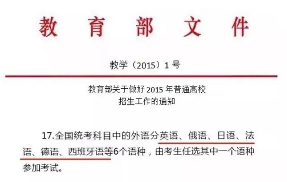 ★ 国家各部门联合下发了一系列文件,明确了高考外语由英语、日语、俄语、德语、法语和西班牙语共六门语种构成,学生可以根据自身情况自主选择。