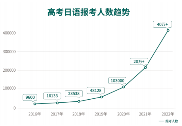 近几年来,全国范围内选择日语参加高考的人数逐年呈上升趋势。