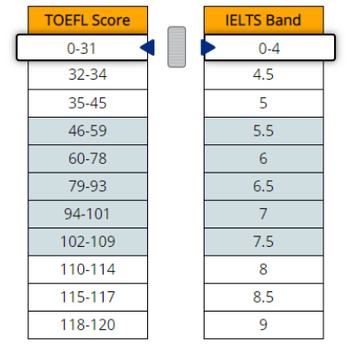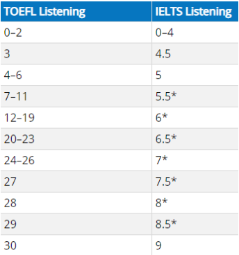 【听力单项】雅思托福分数对照表: