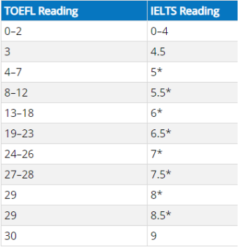 【阅读单项】雅思托福分数对照表: