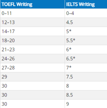 【写作单项】雅思托福分数对照表: