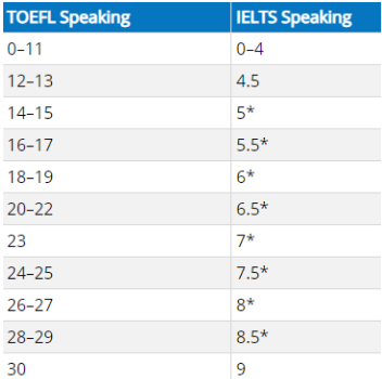 【口语单项】雅思托福分数对照表: