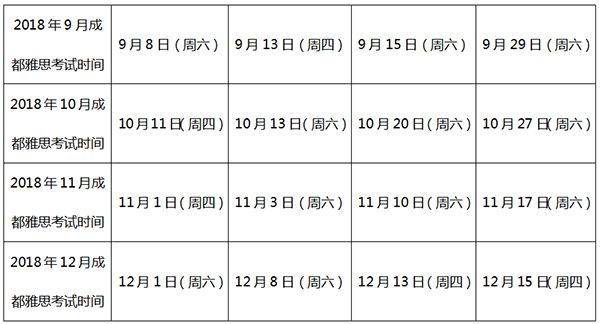 都在这里了,需要在成都考雅思的同学们记牢了哟(如有变动,请以雅思官网公布的为准哦)。如果你想在年底考雅思,现在可以报一个雅思培训班开始学习了,3个月左右的时间,足够让你的听说读写都能更上一层楼。
