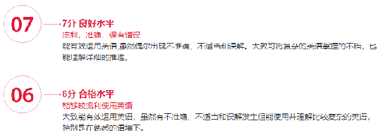 介于6-7分之间,我们可以理解为:在考场上听力能基本听出话语的主要内容;阅读可大致理解文章内容,对于题目关键信息理解没有太多障碍;在写作和口语上已经能够有意识使用一些地道的、复杂的词汇和短语,并且在表达中出现的错误已经较少,对于考官整体理解不会造成太大困扰。