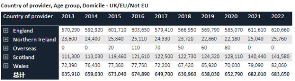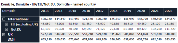 欧盟:通过UCAS申请的欧盟学生人数继续下降,从2021年的28,120人下降至23,160人, 英国脱欧导致欧盟学生也要支付国际生学费,导致了申请量下降。