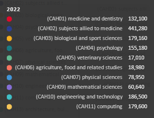 其次是商科,商科申请人数从2020年以来一路飙升,今年达到了381,460(2021年为367,030;2020年为347,160),果然作为“最赚钱的”专业,吸引力还是很大的。