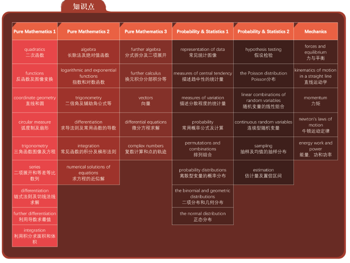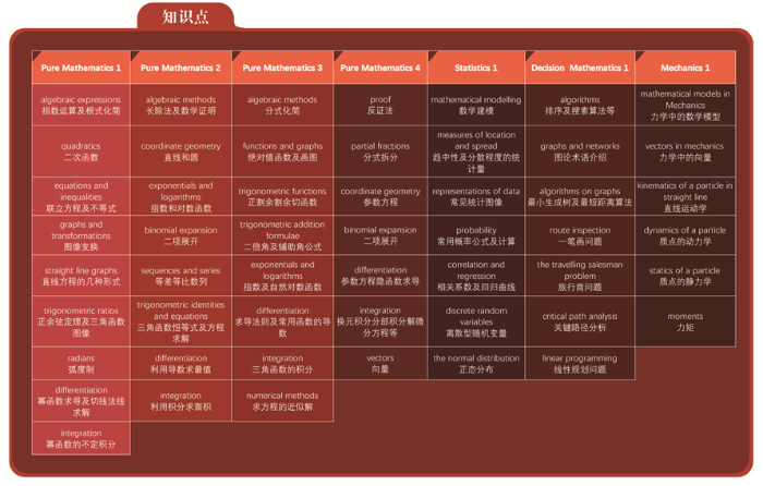 牛津AQA的alevel数学有5个大单元,37个具体知识点,接下来我们一起看看吧。