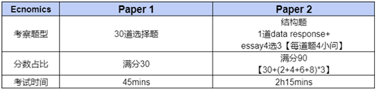 IG经济学考试分为两部分:Paper1 和Paper2