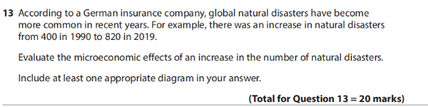 第十三题:这道题乍一看只需要从supply的角度去分析,但还需要注意的是自然灾害摧毁了resources,需要联想到quantity of resources减少导致另外一个图PPF发生了变化。需要详细阐述PPF的相关细节,比如PPF线是什么意思,移动代表什么意思等。讲完supply的变化后再考虑提到微观里对consumer,producer和government的影响都是不错的。