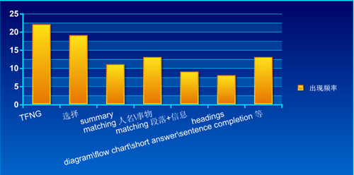2014年雅思季度出现频率的题型依然延续了雅思阅读的经典题型,其中配对题共出现22次。配对题的高频出现给学生都提出了很大的挑战。在备考中,学生要加强语言基本功以及阅读本身能力的培养。