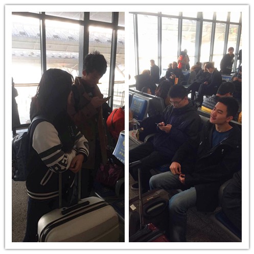 同学和老师们进站候车,心情都很不错呢!