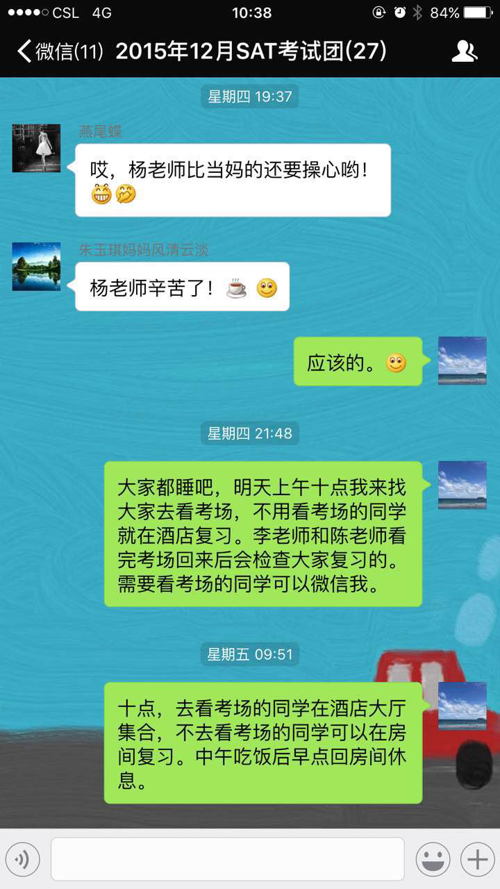紧张吗?没关系,新航道SAT考团可是有备而来,特意安排了随行老师将同学们送到分考场。
