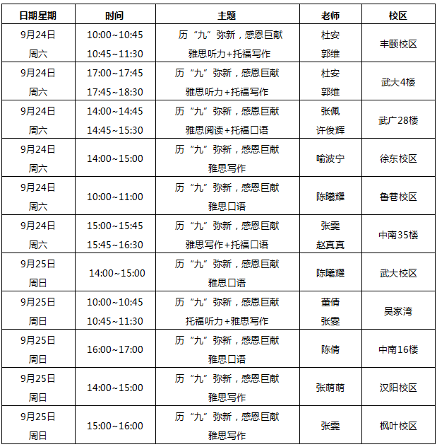 活动安排: 9月24日~9月25日 相约新航道 感受风采 领略英语魅力