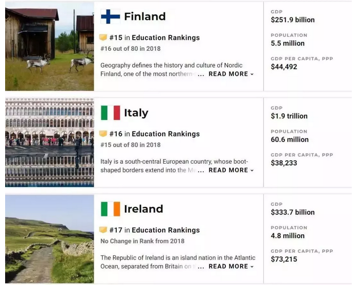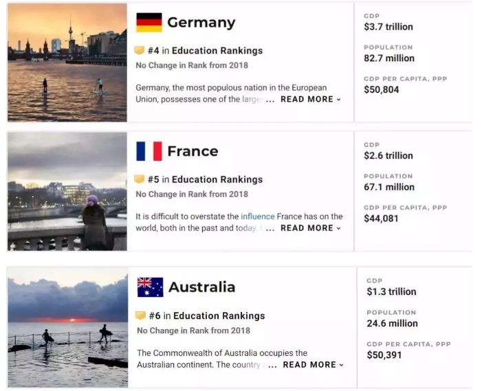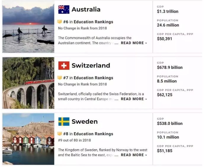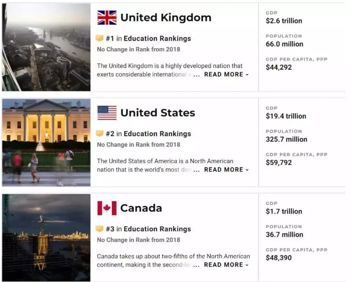 近日,美国权威机构U.S.News发布了《2019年全球教育国家排行榜》。U.S.News Best Countries调查涉及到全球超过2.1万的公民,分析了80个国家的情况。
