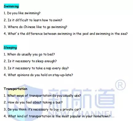 (注:本题库特别将话题分别按照黄、蓝、绿三色进行区分,每组分别展示part1 、 part 2如下~)