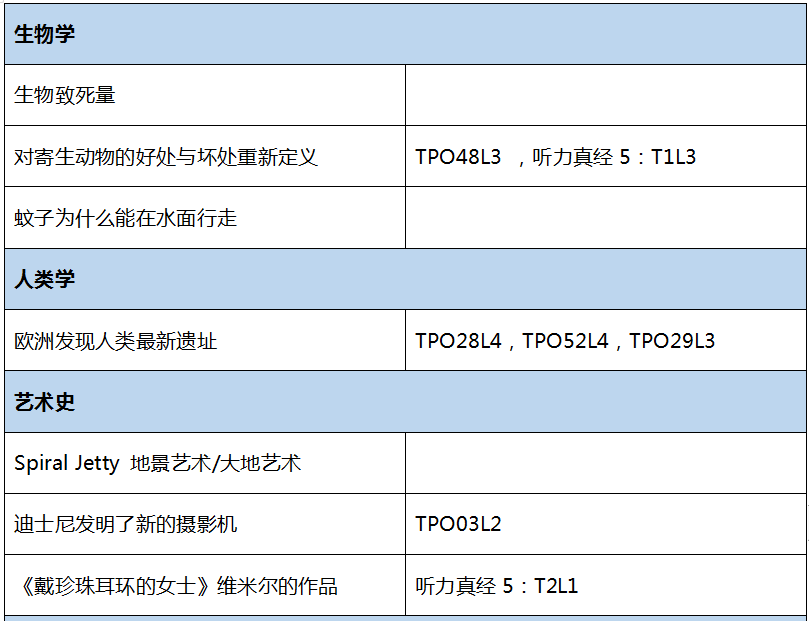 可以从10月份讲座涉及的话题材料可以看出依然还是有很多之前出现过的相似材料的出现,其中有部分材料在托福听力真经5和TPO材料中都有出现。所以建议各位考生在准备托福听力材料时可以通过熟悉托福听力真经5,6和TPO中出现的相似材料来熟悉考试的话题内容。在备考托福考试时针对备考时间较长的学生建议可以先从TPO的材料练习开始,在练习TPO材料时可以先熟悉最近常考的话题材料练习,例如:艺术史,生物学,考古学的话题。对于临近考试的学生建议可以直接练习听力真经5和听力真经6上的相关材料,主要还是针对话题相似的进行针对性的练习。