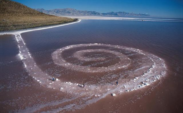 Spiral Jetty 位于美国犹他州(Utah)盐湖城(Salt Lake City)属于旅行打卡的著名地景艺术标志。